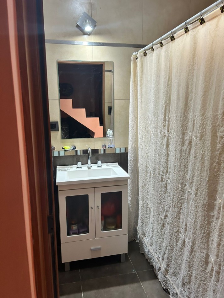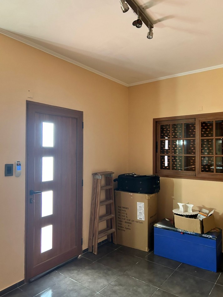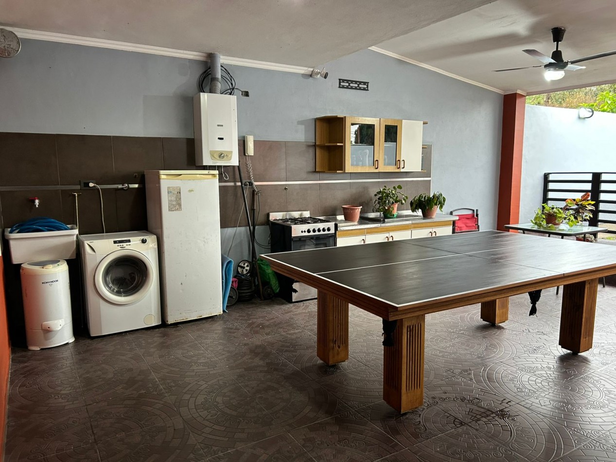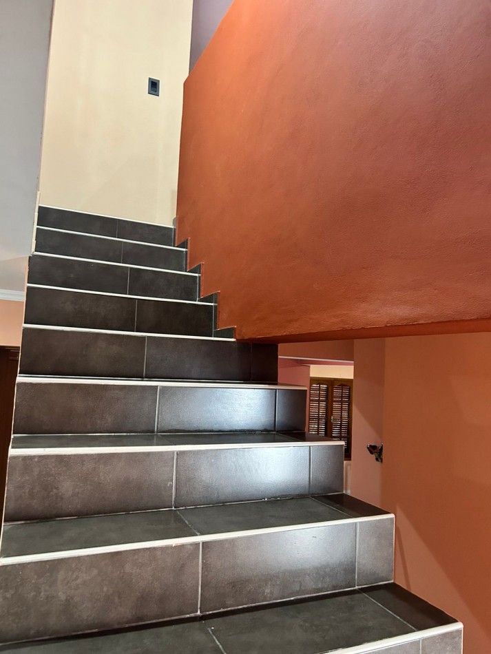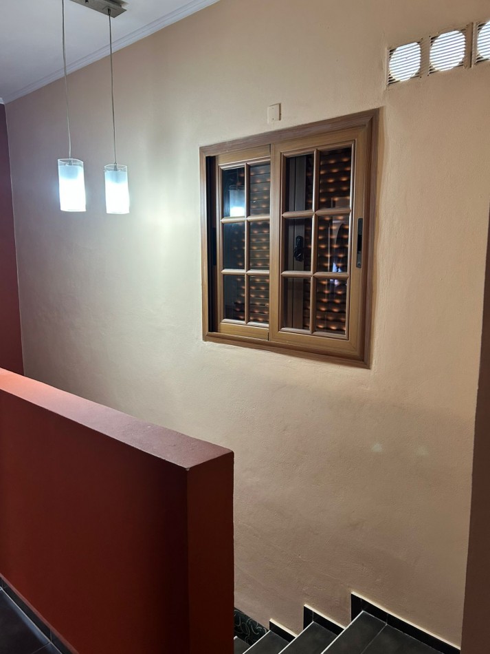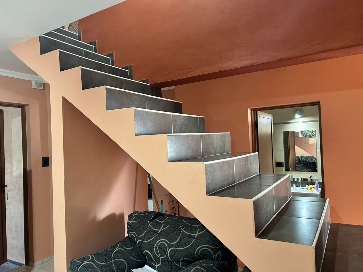 P/Baja: Porch de ingreso, amplio estar comedor diario, cocina semi integrada con amoblamientos completo de primera calidad (mesada, bajo mesada, alacena, horno, anafe, extractor) living con hogar a gas natural, 1 baño social, 1 dormitorio , garaje amplio de 3.50x7.00 gracias a sus dimensiones es muy cómodo para aperturas de puertas dentro del mismo y tener acceso directo a la vivienda, escritorio/play room, una gran galería tipo quincho con todas las comodidades y espacios para disfrutar en familia con una hermosa vista hacia el fondo parquizado con cerramientos completos brindando seguridad y privacidad, galponcito de guardado.