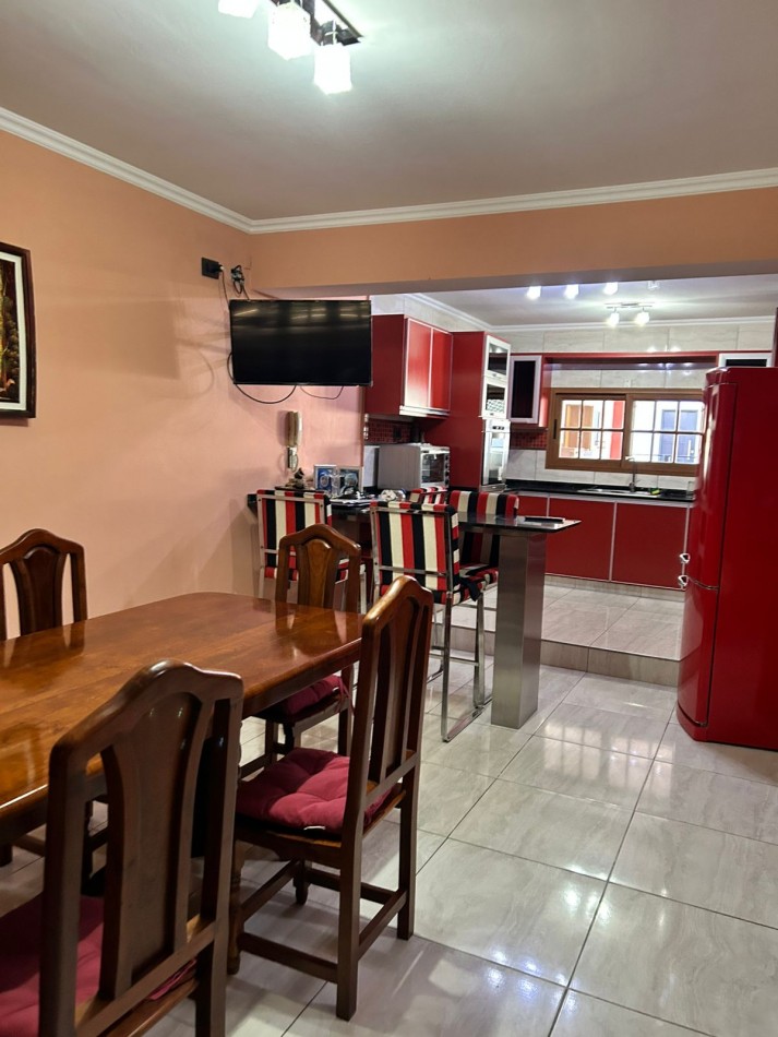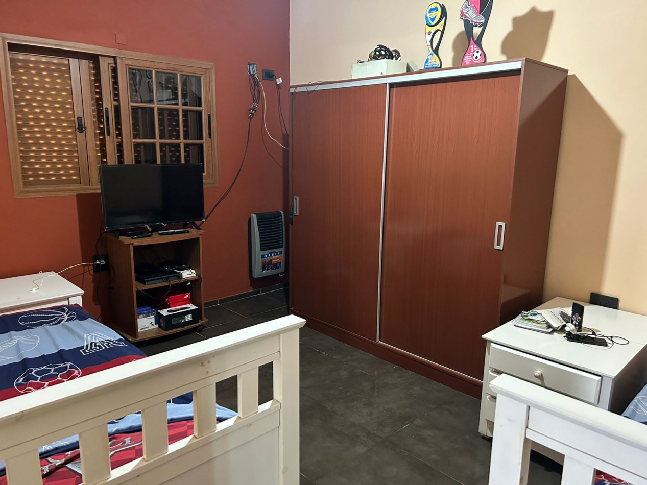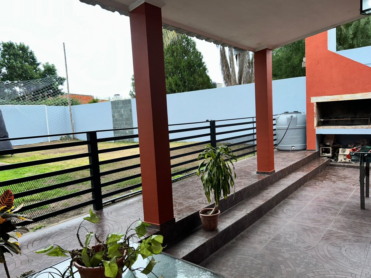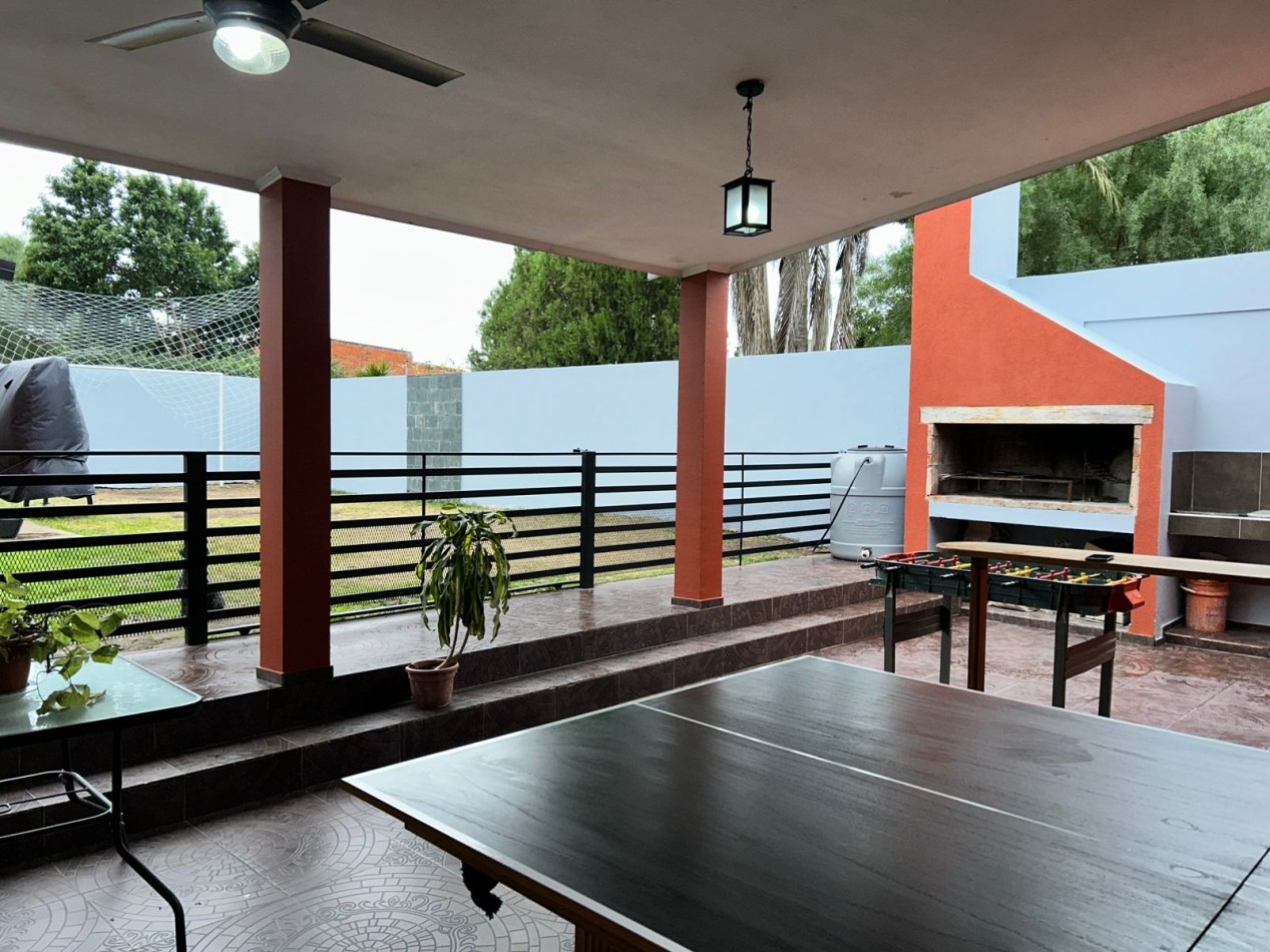 P/Baja: Porch de ingreso, amplio estar comedor diario, cocina semi integrada con amoblamientos completo de primera calidad (mesada, bajo mesada, alacena, horno, anafe, extractor) living con hogar a gas natural, 1 baño social, 1 dormitorio , garaje amplio de 3.50x7.00 gracias a sus dimensiones es muy cómodo para aperturas de puertas dentro del mismo y tener acceso directo a la vivienda, escritorio/play room, una gran galería tipo quincho con todas las comodidades y espacios para disfrutar en familia con una hermosa vista hacia el fondo parquizado con cerramientos completos brindando seguridad y privacidad, galponcito de guardado.