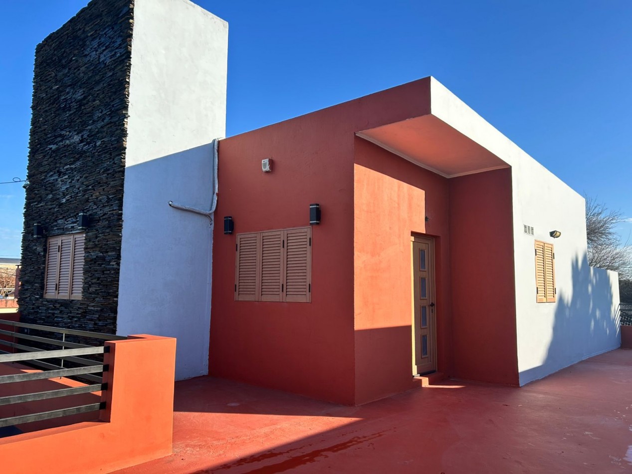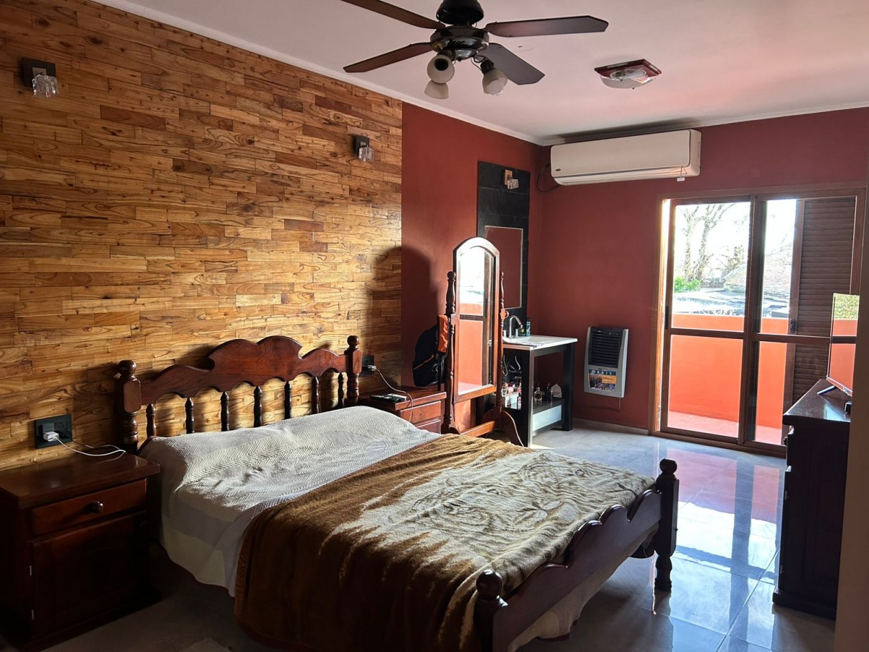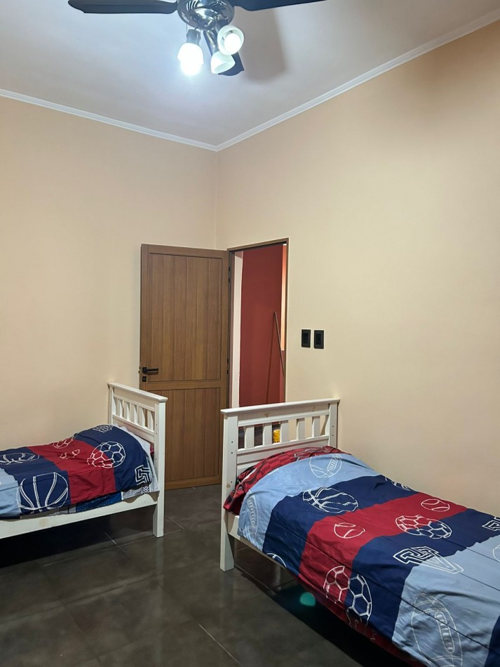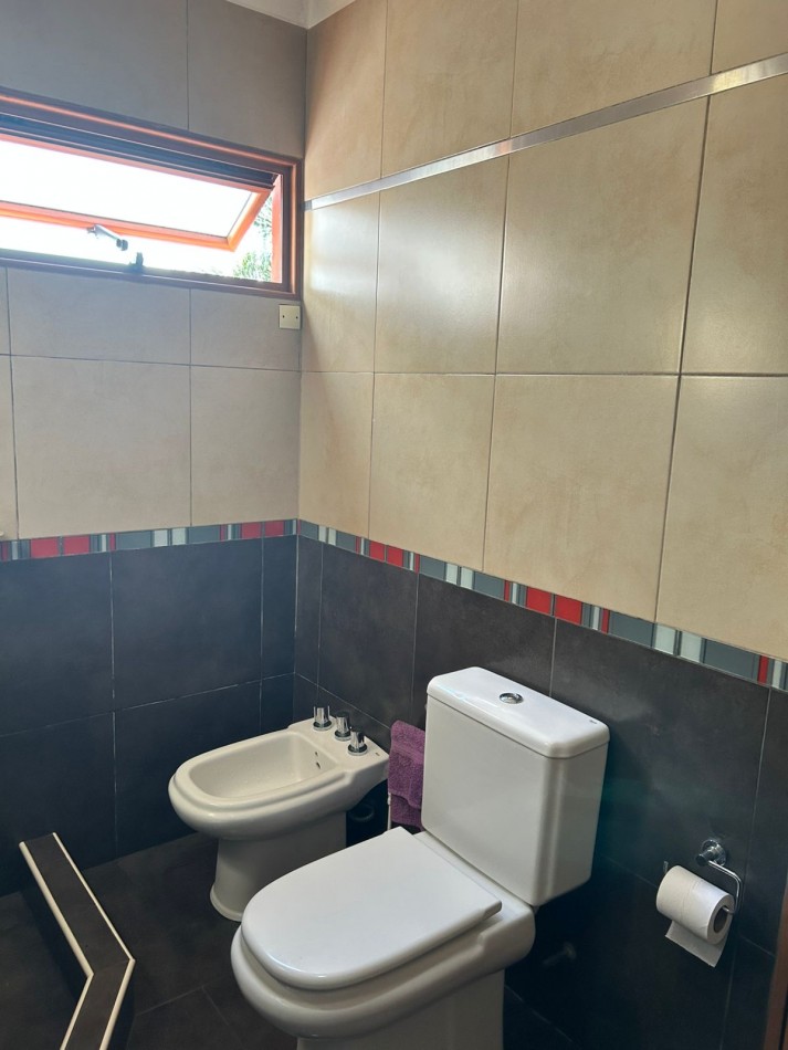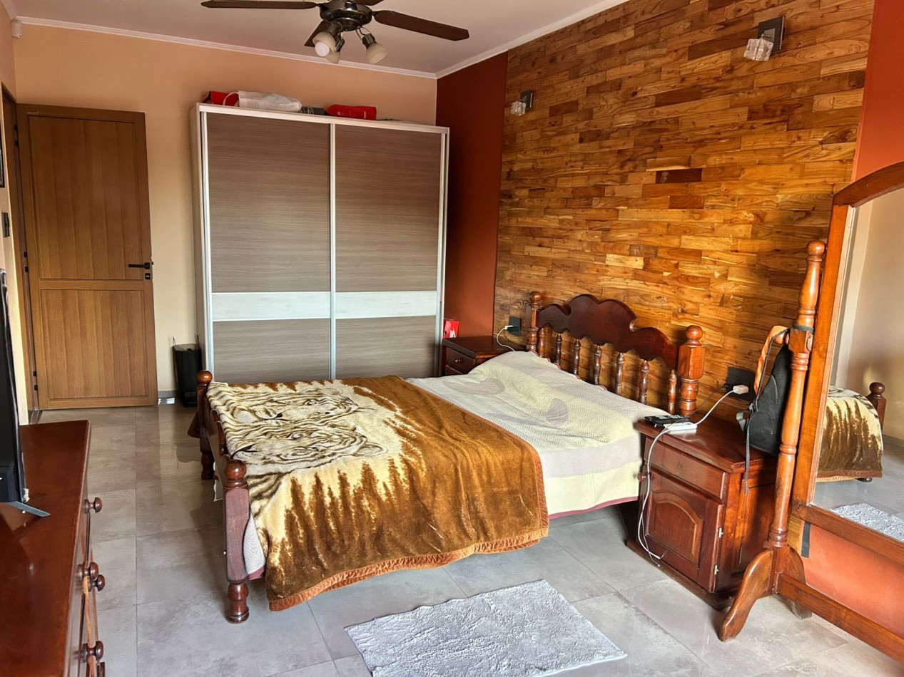 P/Baja: Porch de ingreso, amplio estar comedor diario, cocina semi integrada con amoblamientos completo de primera calidad (mesada, bajo mesada, alacena, horno, anafe, extractor) living con hogar a gas natural, 1 baño social, 1 dormitorio , garaje amplio de 3.50x7.00 gracias a sus dimensiones es muy cómodo para aperturas de puertas dentro del mismo y tener acceso directo a la vivienda, escritorio/play room, una gran galería tipo quincho con todas las comodidades y espacios para disfrutar en familia con una hermosa vista hacia el fondo parquizado con cerramientos completos brindando seguridad y privacidad, galponcito de guardado.